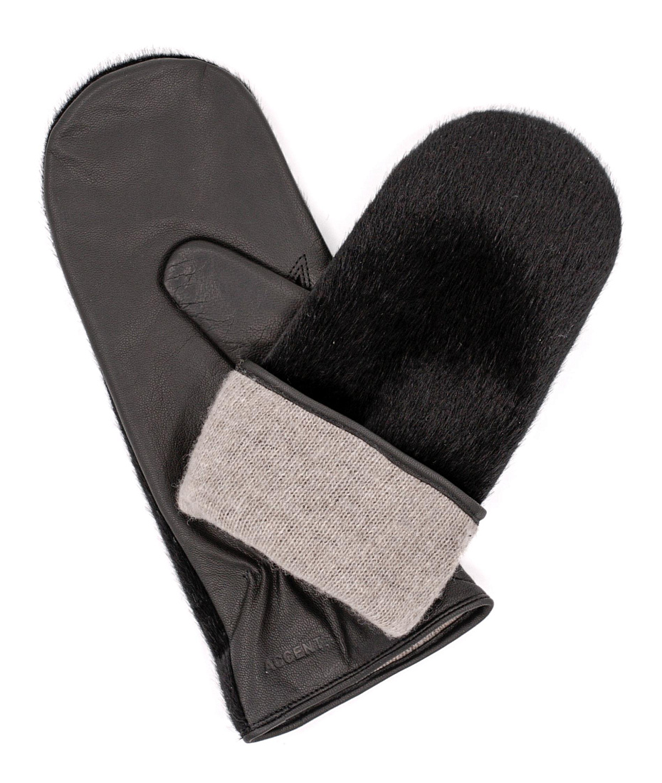 Кожаные рукавицы с декором из искусственного меха